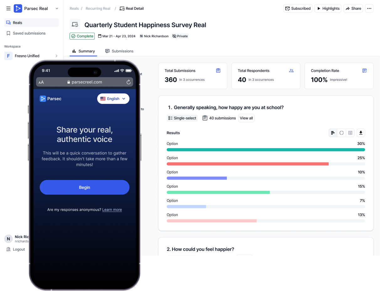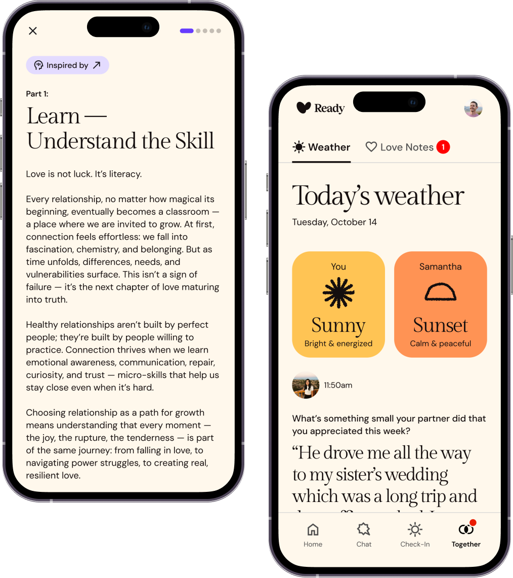 Through Aligned, I am currently the founding designer for Ready (an iOS app created to help couples repair emotional distance) while also leading Product Design at Parsec Education where I oversee and manage the entire product design function (Parsec is an AI-powered Ed-Tech platform that helps school districts collect and analyze their student performance data).